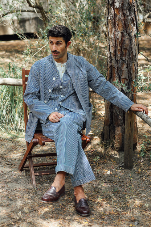 Stone washed stripes denim 10 oz.